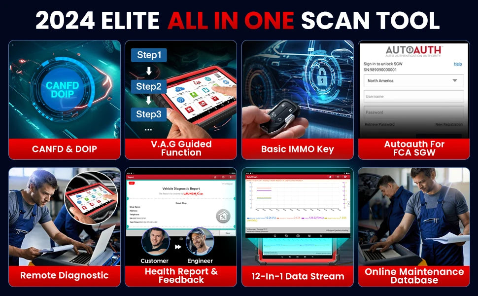 - AutoVIN ja aruanded: Automaatne VIN-tuvastus ja ühe klõpsuga diagnostikaaruannete genereerimine, mida saab jagada e-posti teel või printida.